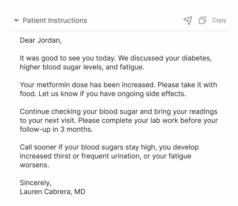 Generate codes, letters, and patient instructions, then push to your EHR.