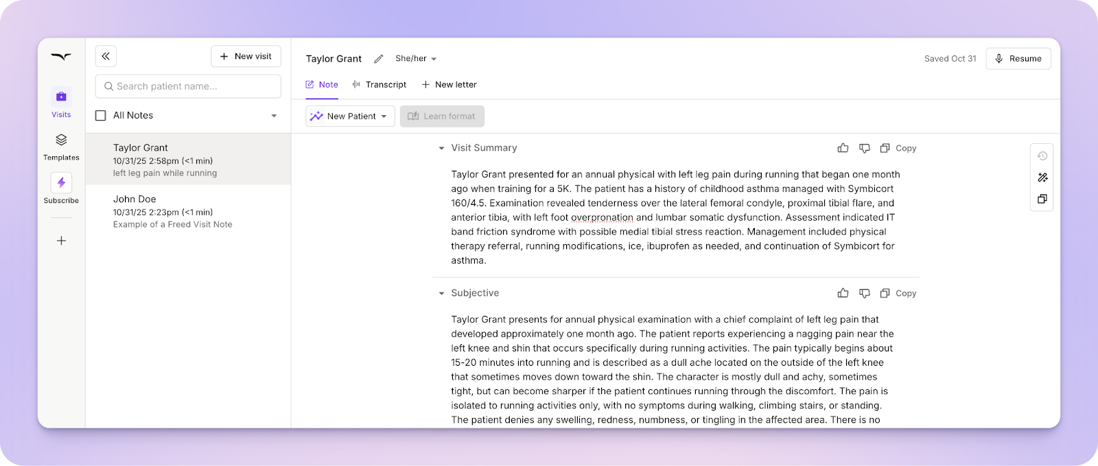 Freed is designed to do more than generate notes. It’s a true clinician assistant that supports before, during, and after the visit.